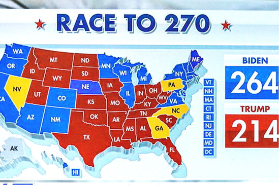 这张2020年美国总统选举地图证明,相较于乔·拜登更传统的自由民主组合套路,大量美国选民更喜欢特朗普善于蛊惑人心的宣传伎俩。图: Jeffrey Isaac Greenberg / Alamy Stock Photo