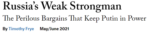 (作者是哥伦比亚大学政治学系教授,近著为《Weak Strongman: TheLimits of Power in Putin’s Russia》,本文节选自该书。原题“Russia’s Weak Strongman”,见于《外交事务》2021年5/6月号,网络版发布于2021年4月1日。译者听桥,不负责辞章完美,且有多分段。)
