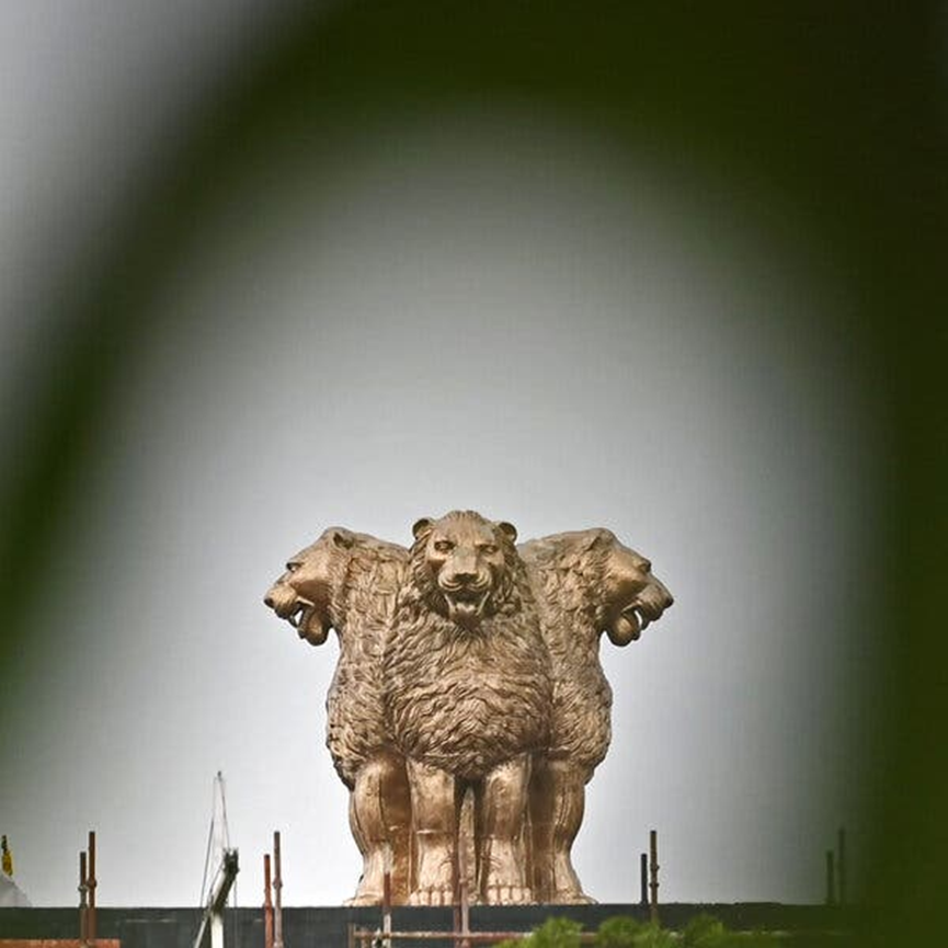 上月,站在接近完工的印度新议会大厦楼顶,总理纳伦德拉·莫迪拉下一只手柄。该大厦是为纪念印度独立75周年而建。随着一块巨大的红色帷幕向后拉开,这座建筑顶部的雕像露出真容。在印度各地,许多人倒吸了一口凉气。