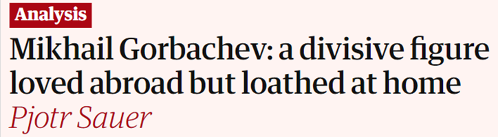 直到生命的最后一天,米哈伊尔·戈尔巴乔夫都生活在一个双重现实中:在华盛顿、巴黎和伦敦,人们热爱和颂扬他;但在俄罗斯,大量俄罗斯人攻讦他,这些人永远不会原谅他的改革引发的动荡。