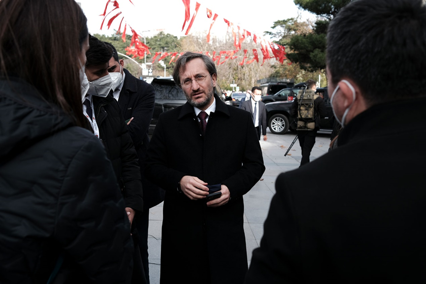 2021年12月,土耳其政府对外联络局局长Fahrettin Altun 在伊斯坦布尔与记者交谈。图源:REUTERS/Murad Sezer