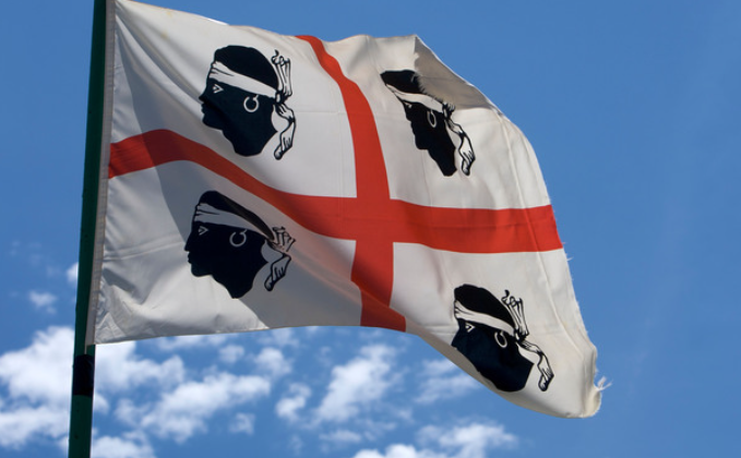 该旗帜样式乃白底红色十字,上面有四颗黑色侧面人像,为意大利南部岛屿撒丁岛所有。