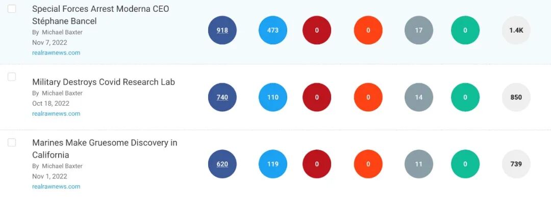 自2020年上线以来,Real Raw News以其耸人听闻的虚构报道收获了大量点击,也引起了一些事实核查机构的重点关注。但从专业内容分析和研究工具BuzzSumo提供的数据来看,2022年Real Raw News的社媒参与量仍然较高,关于Stéphane Bancel被捕的文章截至发稿前已经有1400左右的转发参与。