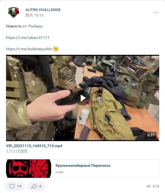 目前Alexei Nikolaevich的YouTube和电报频道中已无法找到网传视频,但是他11月13日晚发布电报称,“朋友们,关于与中国代表的视频,他们只是我们的朋友,是气枪玩家。不要误会我的意思,他们还没有站在我们这边战斗。”