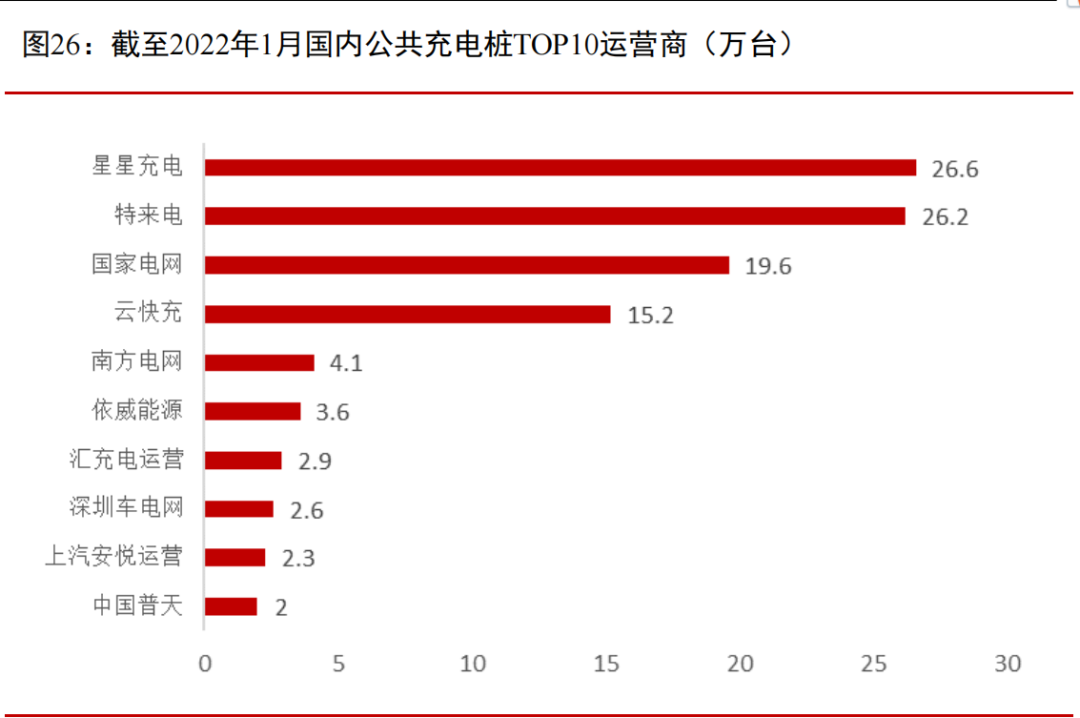 2022年1月国内公共充电桩Top 10运营商,图源东莞证券