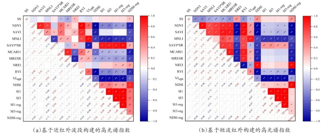 Fig. 4 Correlation analysis between hyperspectral indices and soil salinity
