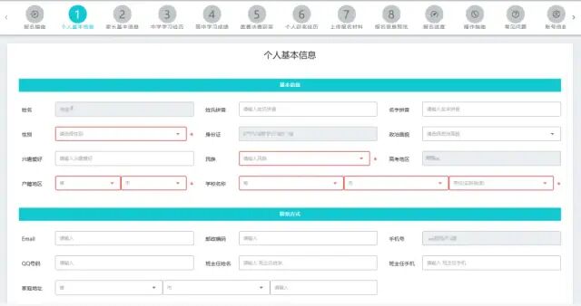注册账号并完成登录后,考生按照报名系统顺序依次录入信息和上传材料。