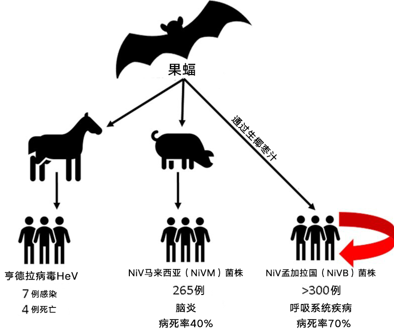 2014年菲律宾和2018年印度喀拉拉邦也发生了感染暴发[19,20]。自1994年起,澳大利亚发生过亨德拉病毒引起的马和人类感染。