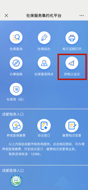 输入“社保” :成都社保/电子社保卡/养老金/4050补贴;