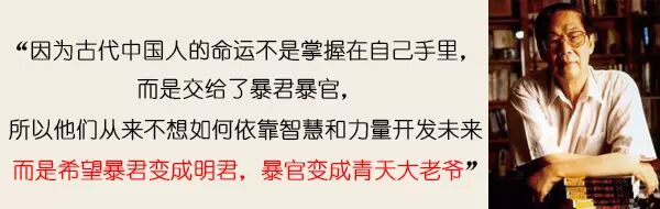 中国人是一个受伤很深的民族,没有培养出赞美和欣赏别人的能力,却发展出斗臭或阿谀别人的两极化动物。更由于在酱缸里酱得太久,思想和判断以及视野都受到酱缸的污染,很难跳出酱缸的范畴。