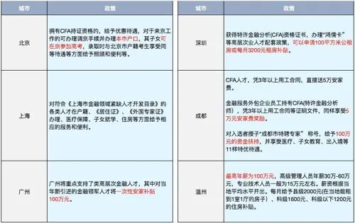 各地出台利好政策,抢夺CFA人才!