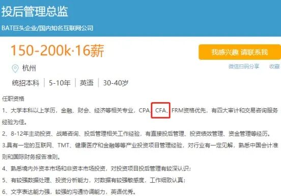 除了传统金融公司外,以BAT为首的互联网巨头也对CFA人才虎视眈眈。![]()