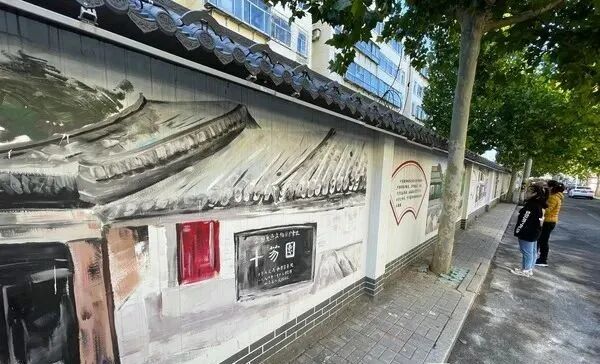 记者看到,约200米长的水巷子街两侧墙壁上绘制了城隍庙、十笏园、万印楼等一系列老潍县有名的文化景观,既美化了社区周边环境,又彰显了潍坊本地人文文化,令这条老街巷充满了传统文化韵味。