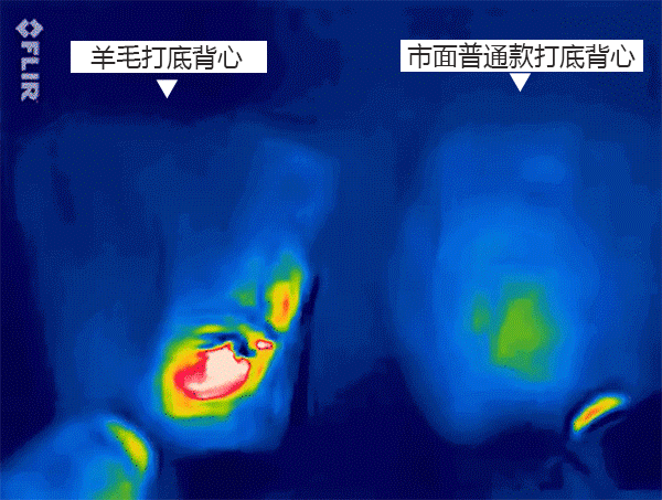 一旦停止,普通背心马上变蓝,而羊毛打底背心的高温红久久不散: