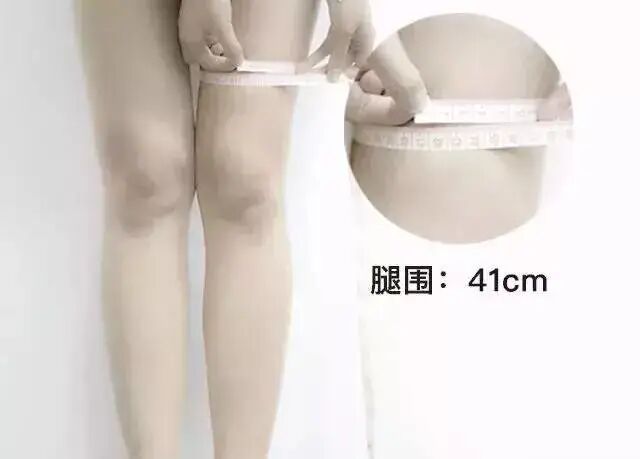 再来看看我们的实测,裸腿测量的腿围是 41cm: