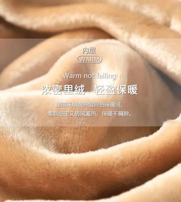 内层采用了高密度棉绒,柔软细腻,可以紧致包裹腿部,恒温保暖,热量循环凝聚0流失。