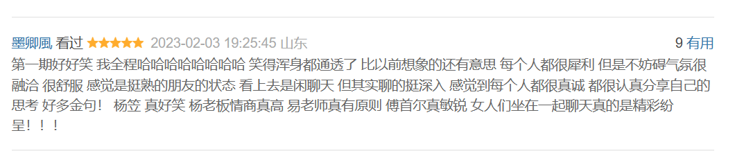 比如杨天真擅于把控节奏、总结归纳,杨笠总能用诙谐的方式化解一些敏感话题,而易立竞强大的包容心不会让话题落地,总能很好地提问,而傅首尔则会在话题之后填缺补漏。