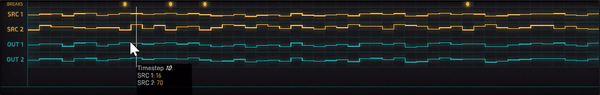 不难发现,信源是按照 2V 叠加的变化,OUT1 = SRC1 + 5,OUT2 = SRC1 * 0.5。所以我用一个偏移模块和一个衰减模块就搞定了本关内容。