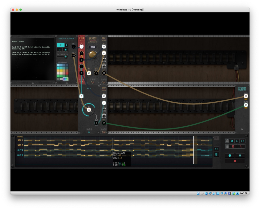 到了第四关,游戏告诉我们连线可以改变颜色,还新增了笔记本和四路示波器模块。看来这 Patch 要很快的复杂起来了!我简直迫不及待地搓手手……