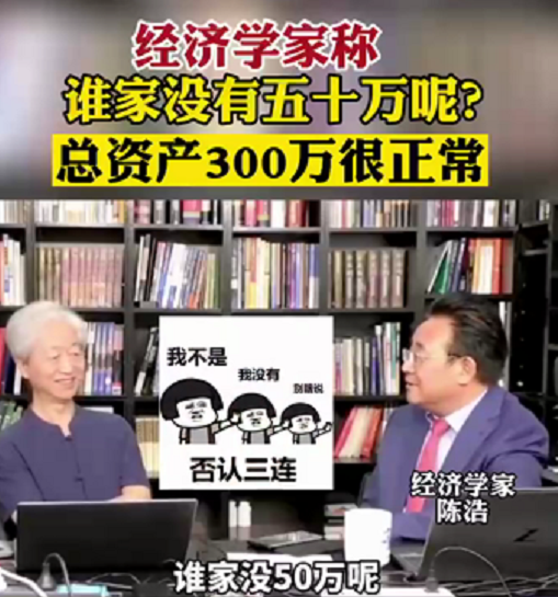 “现在谁家还没有50万呢?中国人没那么穷……中国人现状平均家庭资产300万。”