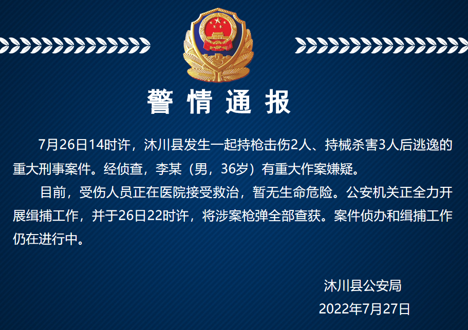 7月27日凌晨【#四川沐川通报持枪伤人案#】#乐山通报持枪击伤2人持械杀害3人案# 登上热搜!