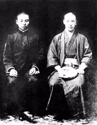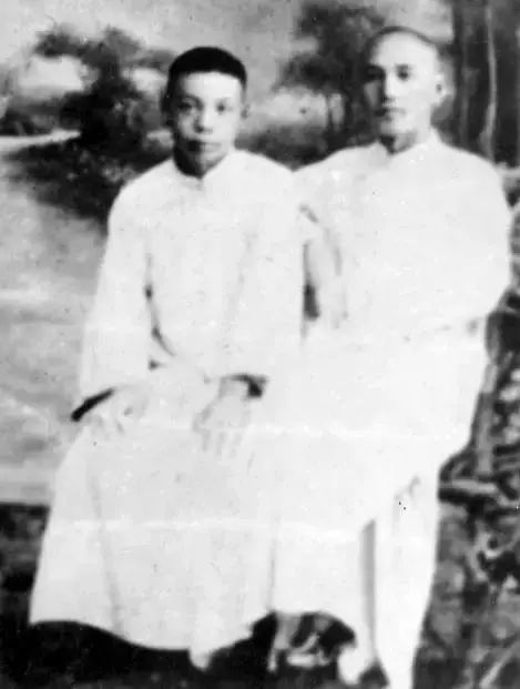 1910年,蒋介石(右)留学日本期间着和服与同学张群合影,蒋介石时年23岁。
