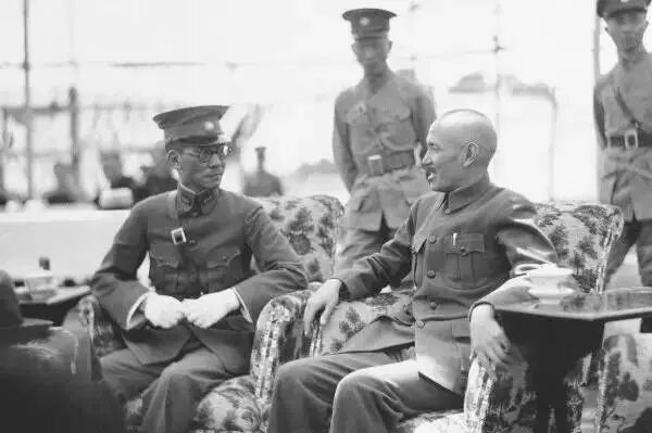 1930年,中原大战时的蒋介石与张学良。蒋介石时年43岁,张学良时年29岁。