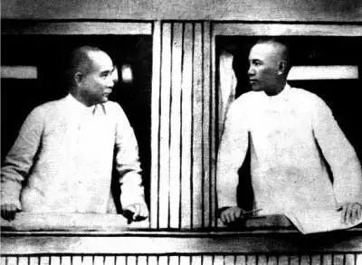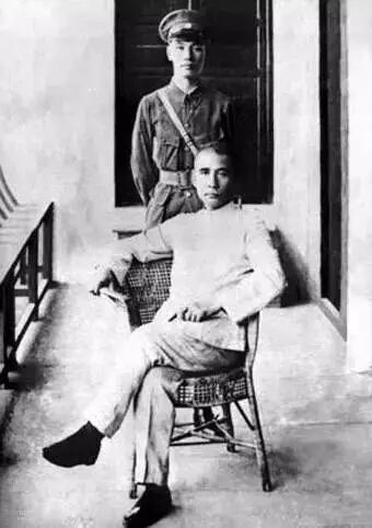1923年,蒋介石任大元帅行营参谋长时,与孙中山在广州车站合影。