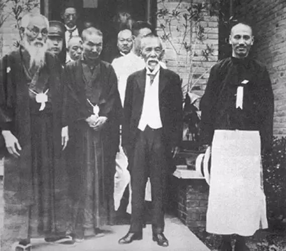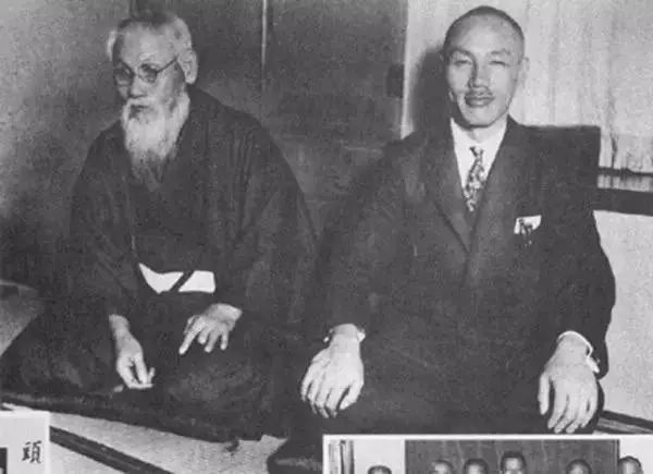 1927年10月18日,蒋介石第一次下野后东渡日本,与头山满合影。
