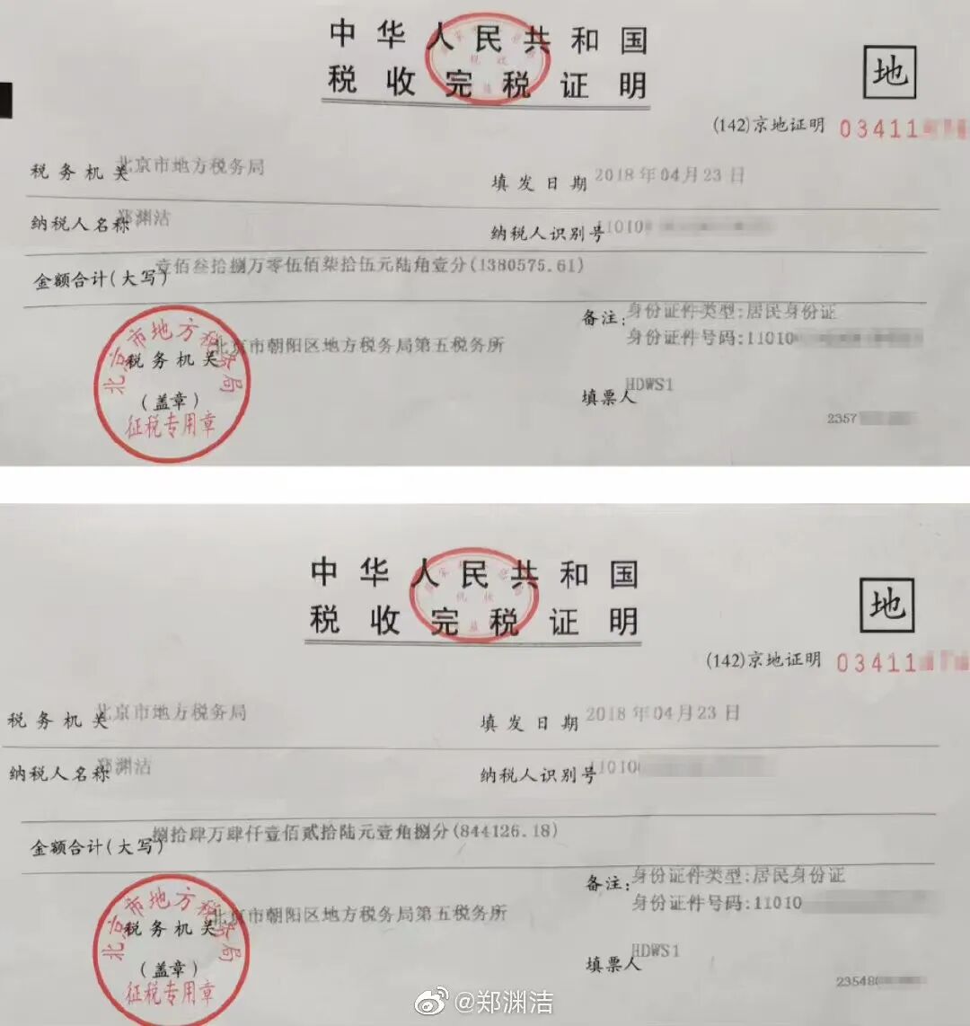 郑渊洁公开税单