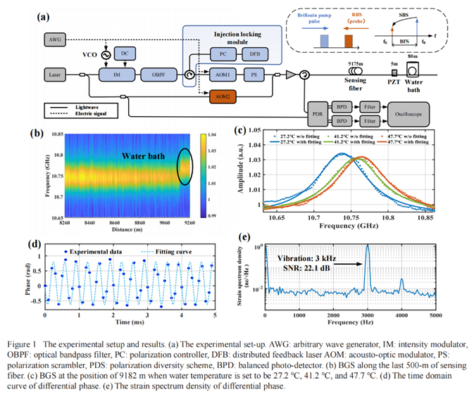 分布式光纤传感 (DFOS) 技术已广泛应用于多个领域。这种技术主要通过分析光纤中的三种后向散射:瑞利散射、布里渊散射以及拉曼散射来实现。传统的传感系统只能测量一种参数,如温度、应变等静态变量,或振动等动态变量。然而,在许多应用中,例如铁路安全监测系统,不仅需要监测振动用于预警,还需要采集温度及应变等静态变量进行长期分析。因此需要有一套可以同时实现动静态变量测量的传感系统,,且希望系统能具有长距离测量的能力和单端接入的特点,从而更适合于实际工程应用。
