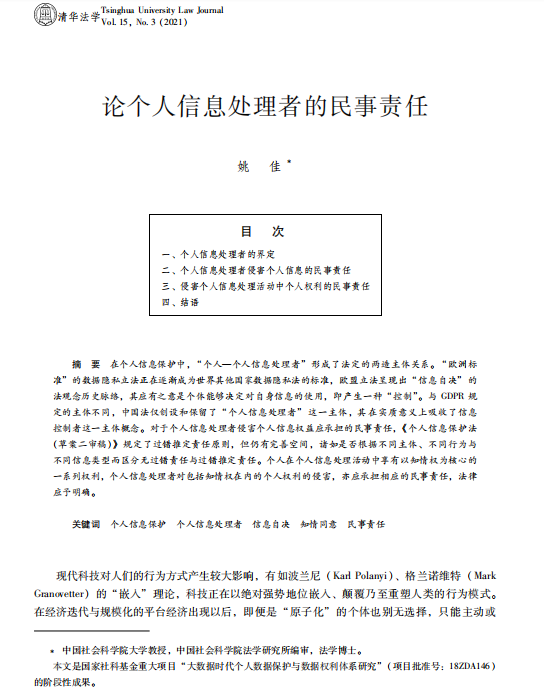 姚佳:论个人信息处理者的民事责任