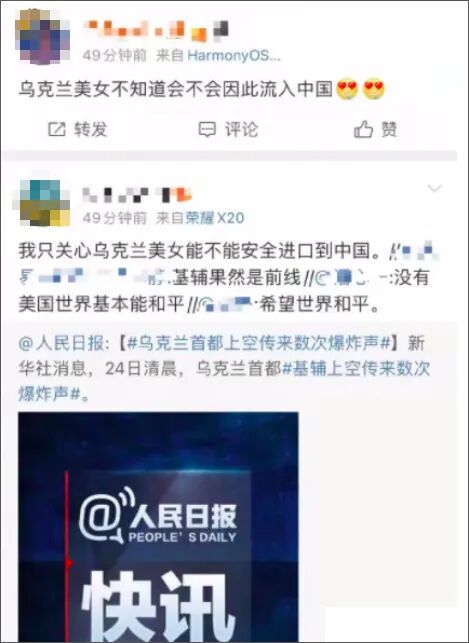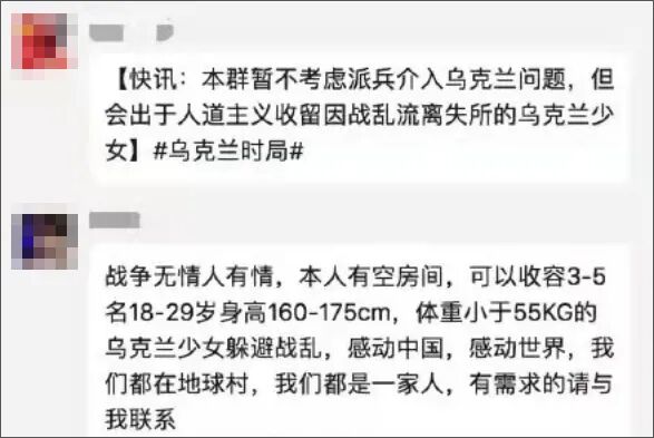 有人说:战争会死很多乌克兰男人,那乌克兰女人就孤单了,于是发出“收留18~24岁乌克兰女孩”的脑残论调。