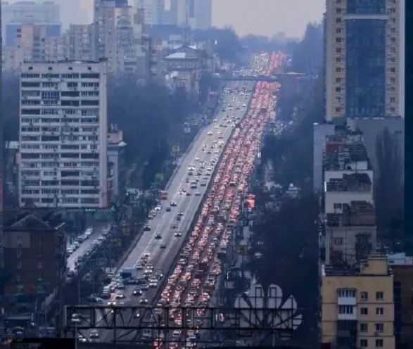 而无辜百姓只能逃亡,基辅出口,出现长达数公里的拥堵,人们正在逃离首都。