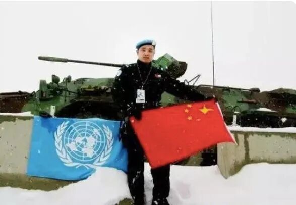 长白山公安局长吴强,他作为维和警察前往东帝汶执行任务,胸前张贴着五星红旗。