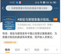 就在俄乌发生战争的时候,一条中国驻乌克兰大使馆已经准备分批包机接中国公民的消息登上热搜。