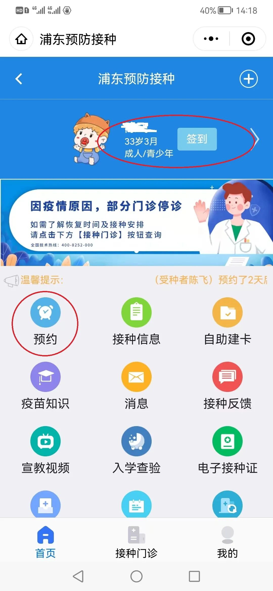 ②点击“接种预约”