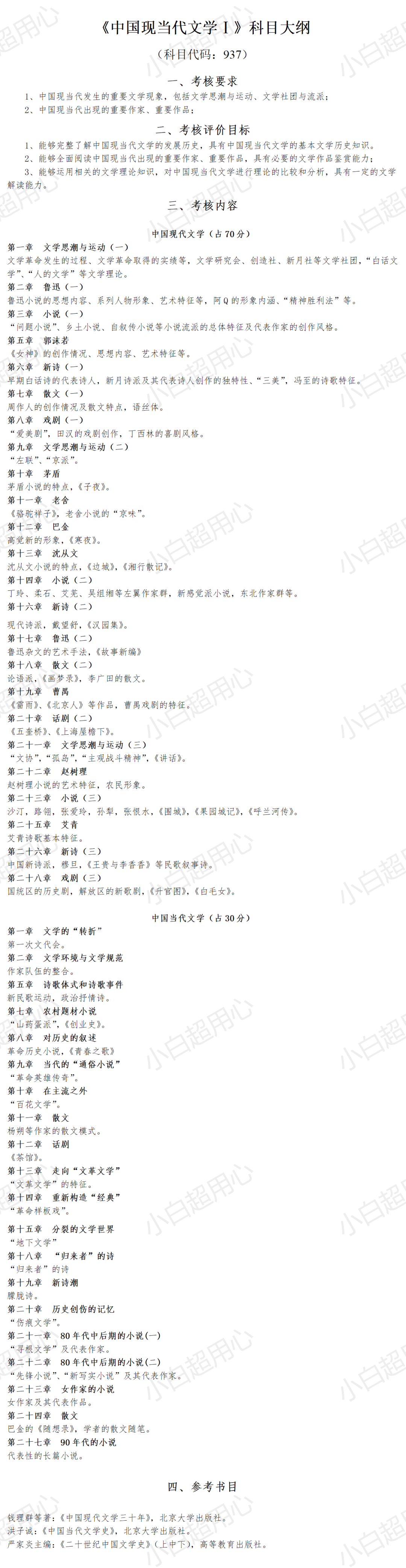 中国现代文学(占70分)