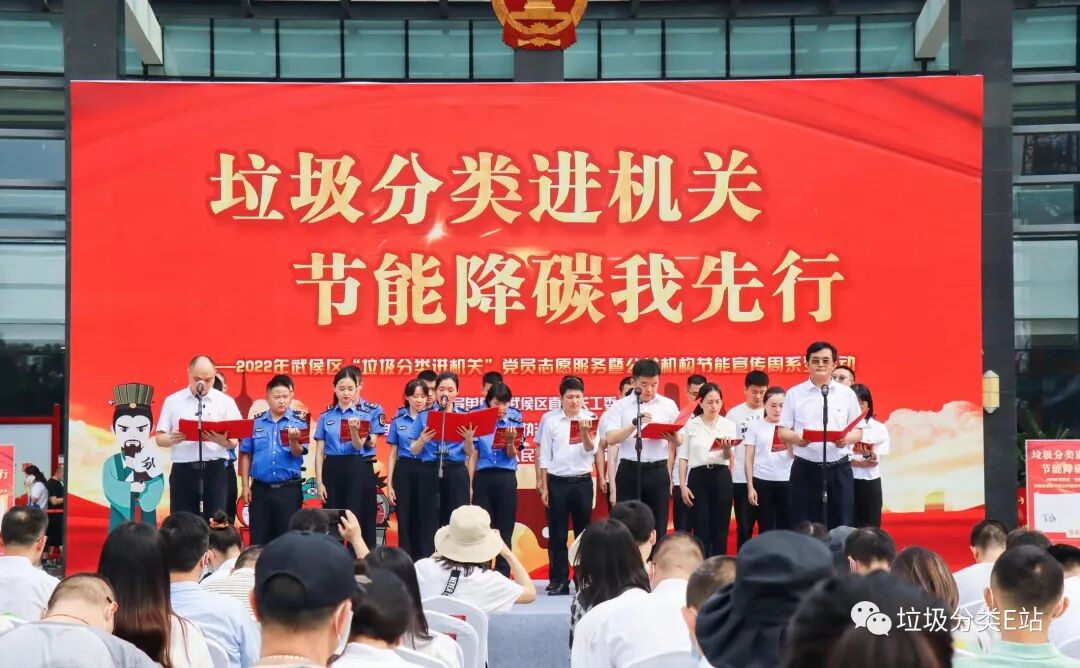 6月15日,成都市武侯区综合行政执法局、机关事务管理中心和簇锦街道党组织在武侯区市民中心联合举行武侯区“垃圾分类进机关”党员志愿服务暨公共机构节能宣传活动。来自全区各机关事业单位的80余名党员志愿者参加活动。