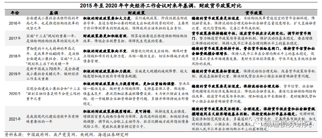 1)21年政策基调保持稳定、不急转弯,政策难松难紧。中央经济会议定调:明年宏观政策要保持连续性、稳定性、可持续性。要继续实施积极的财政政策和稳健的货币政策,保持对经济恢复的必要支持力度,政策操作上要更加精准有效,不急转弯,把握好政策时度效。