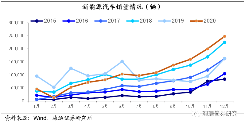 20年新能源车销量同比明显增加。根据中汽协数据,20年新能源汽车累计销量136.7万辆,同比增加10.9%,其中12月销量为24.8万辆,同比增长49.5%。20年新能源汽车产量为136.6万辆,同比+7.5%,其中12月产量为23.5万辆,同比+55.7%。根据海通海外组预测,今年1月新能源汽车销量同比继续高增,除春节及低基数影响外,上海的持续抢购新能源势头较猛,加之双积分政策对新能源产销数量有更高要求,合资企业新品逐步到位,推动销量增长。