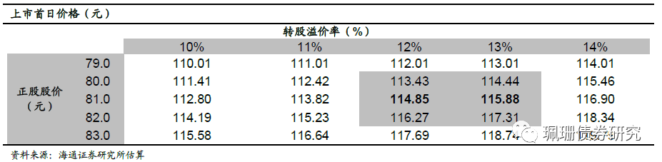 当前正股价对嘉元转债上市价或在113-116元左右。定价方面,参考平价相近的转债,我们预计嘉元转债上市首日的溢价率将在10%-14%左右。若上市后嘉元科技股价在79-83元之间,对应可转债价格中枢或在114元左右。
