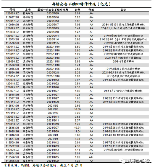 截至2021年4月23日,待发新券共3108.88亿元,共138只(待发转债详见附表2)。其中批文+过会的转债543.44亿元,共36只。