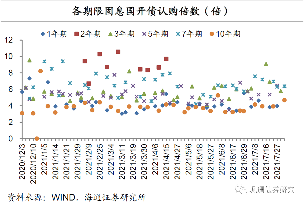 进出口行债需求较好,21进出03(增14)、21进出04(增9)、21进出16的认购倍数分别为7.78、6.95、5.86倍,需求较好;21进出10(增2)的认购倍数为4.65倍,需求尚可。