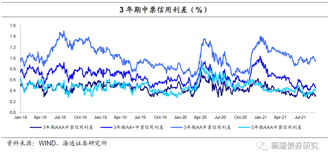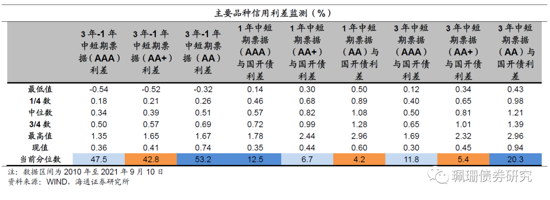 信用债等级利差收窄或持平。具体来看,截至9月10日,1年期短期品种AA级与AAA级中票利差为26BP,较上周末下行2BP;3年期AA级与AAA级中票利差为64BP,较上周末下行1BP;5年期AA级与AAA级中票利差为85BP,与上周末基本持平。信用债期限利差走扩。具体来看,截至9月10日,5年期和3年期的AAA中票期限利差为38BP,较上周末上行2BP;5年期和3年期的AA中票期限利差为59BP,较上周末上行3BP;5年期和1年期AAA中票的期限利差为74BP,较上周末上行2BP。![]()