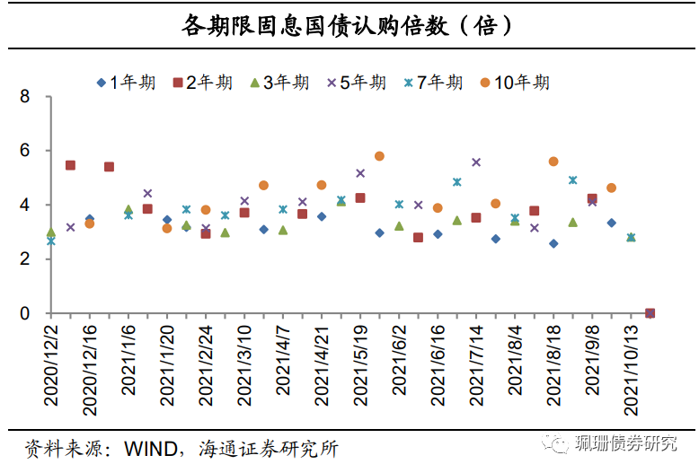 上周,利率债一级市场招投标需求一般,国债+政金债总计划发行规模3238亿元,实际发行规模3253亿元。国债需求分化,政金债需求整体一般。具体来说:国债需求分化,21贴现国债51的认购倍数为3.75倍,需求较好;其余均需求一般。进出口行债需求一般,21进出03(增23)、21进出22(增2)的认购倍数分别为6.48、5.45倍,需求较好;其余均需求一般。国开债需求一般,21国开09(增9)、21国开08(增4)、21国开07(增14)、21国开11(增10)、21国开15(增4)的认购倍数分别为4.88、4.34、3.55、3.47、2.98倍,需求一般。农发债需求一般,20农发07(增20)的认购倍数为6.64倍,需求较好;其余均需求一般。![]()