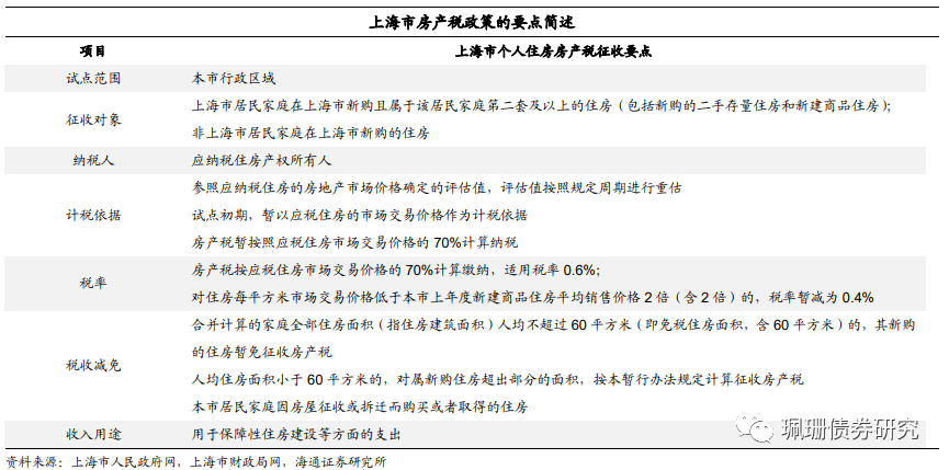 房地产税对信用债市场影响。对城投企业影响主要是通过税收与土地出让收入金来间接影响,其新增税收收入与土地出让金损失的覆盖程度要结合房地产税率、征税评估基准折扣比例等去综合衡量,短期来看对土地出让金冲击更为明显,长期新增税收对土地出让金损失的弥补覆盖程度会加强;而对地产企业影响偏负面,但是影响程度会逐步降低最后趋于缓和。