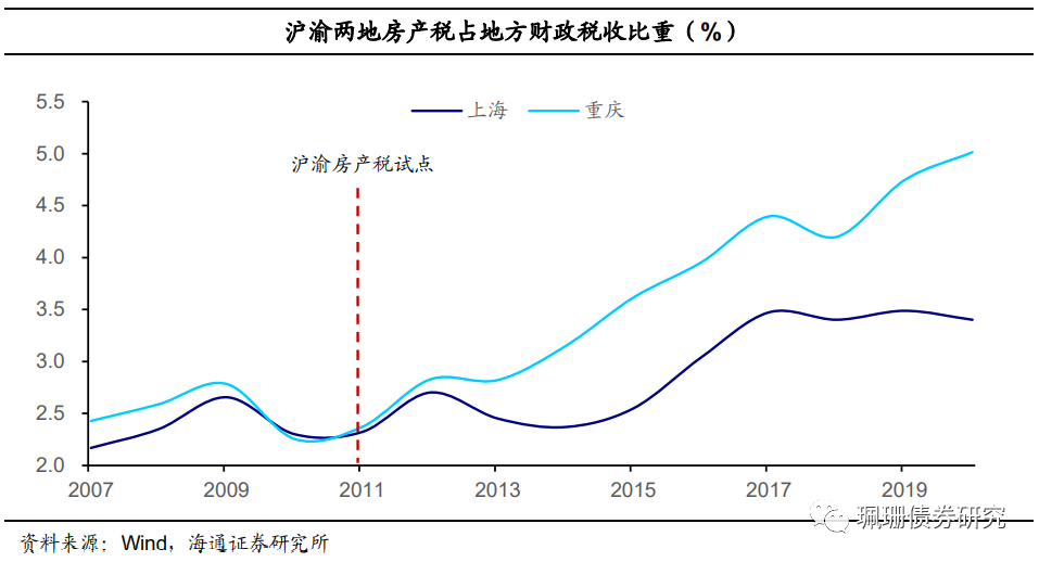 此外,沪渝两市自2011年房产税试点执行以来,其房产税收入占地方财政税收比重始终处于较低水平,其中上海和重庆占比分别低于6%和4%。
