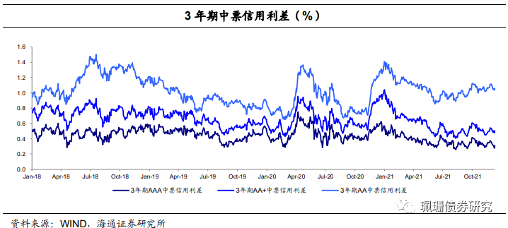 信用债期限利差收窄或持平。具体来看,截至12月10日,5年期和3年期的AAA中票期限利差为33BP,与前一交易周末基本持平;5年期和3年期的AA中票期限利差为48BP,较前一交易周末下行2BP;5年期和1年期AAA中票的期限利差为61BP,较前一交易周末下行2BP。