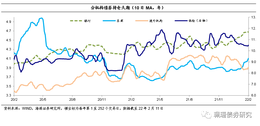 - 银行、券商和境外机构债券持仓久期;此外基金久期缩短(与中长期纯债基金小幅拉久期有分歧,详见正文)。